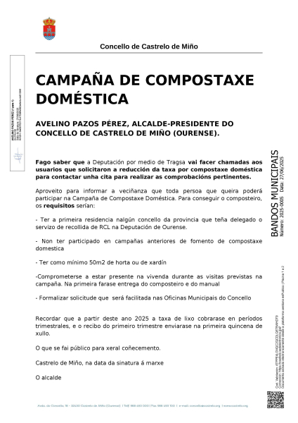 Avda. do Concello, 18 - 32430 Castrelo de Miño (Ourense)
