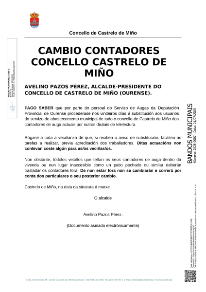 Copyright © 2017 Concello de Castrelo de Miño. - Todos os dereitos reservados // Privado - Deseño, maquetación e programación web a medida Grupo5.com